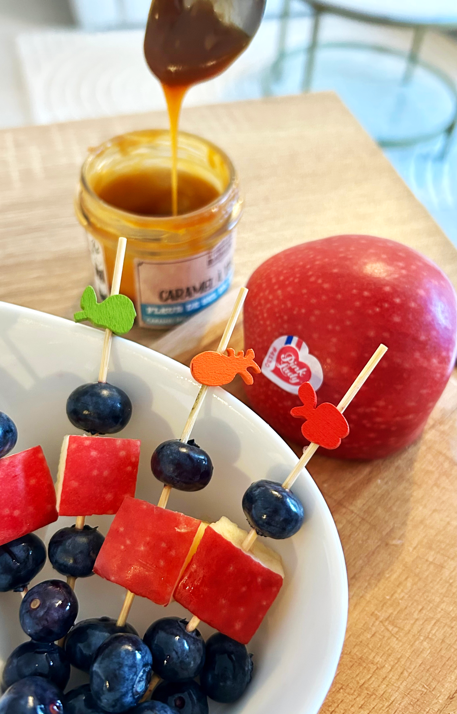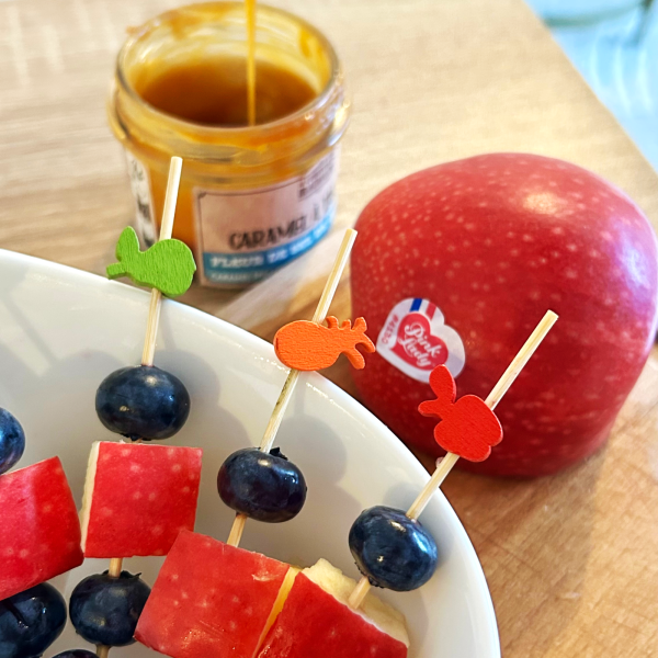 - Rijg op een spiesje afwisselend stukjes appel en bosbessen.