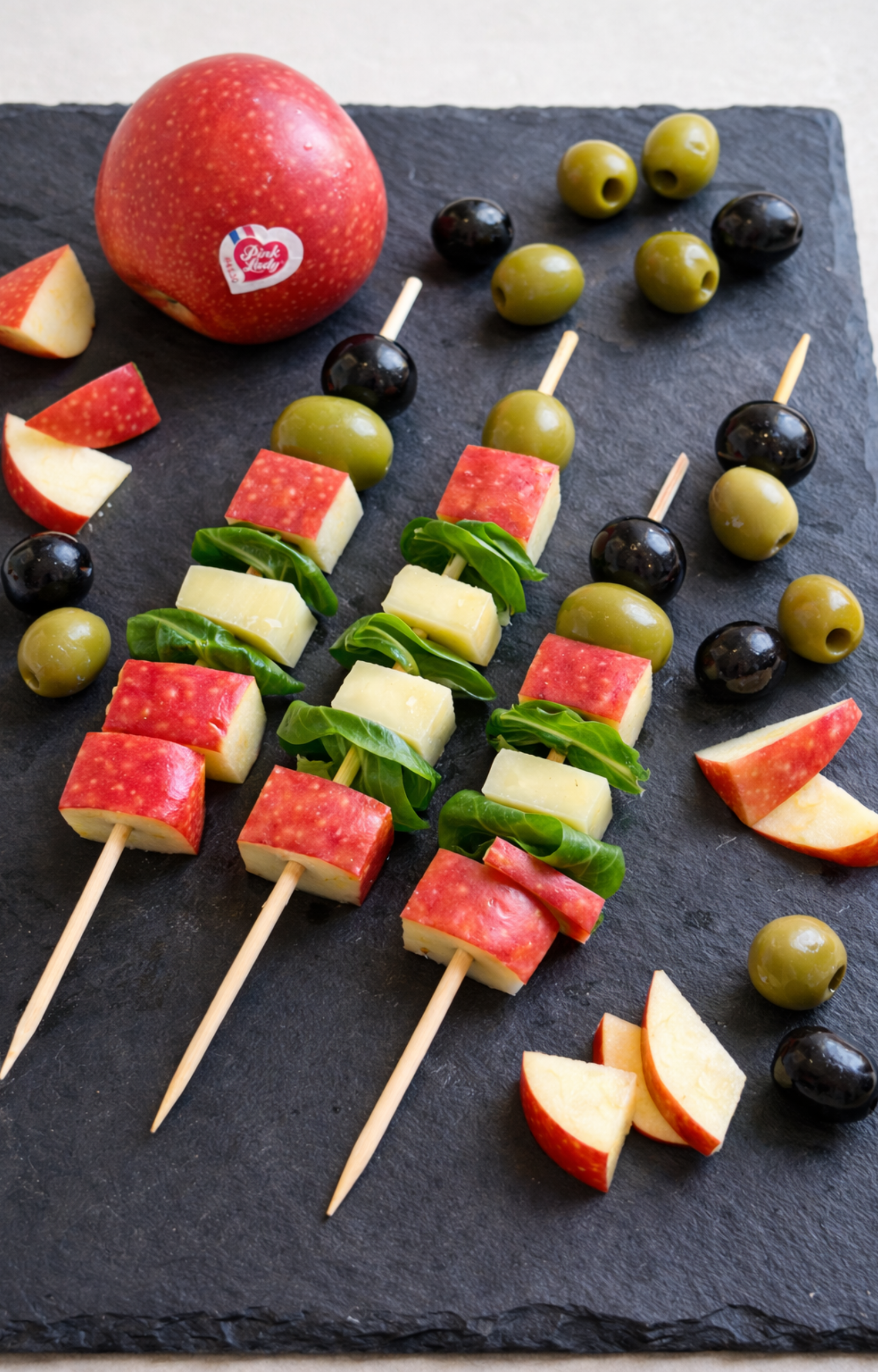 - Voor een geslaagd healthy aperitief serveer je je Pink Lady®-appelspiesjes met een paar toastjes en tapenades!