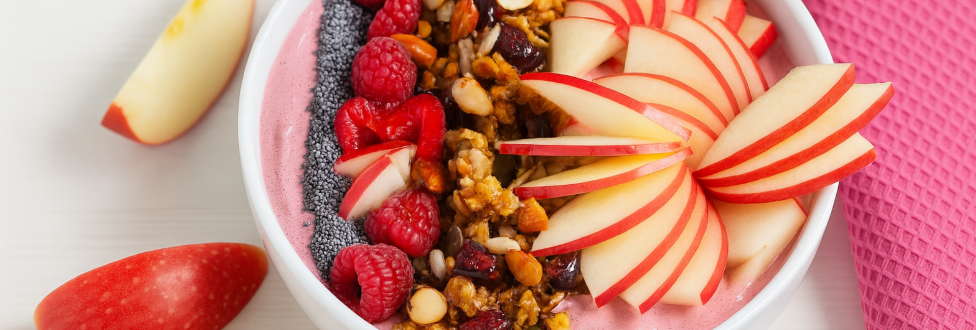 Smoothiebowl met rood fruit en Pink Lady®-appels