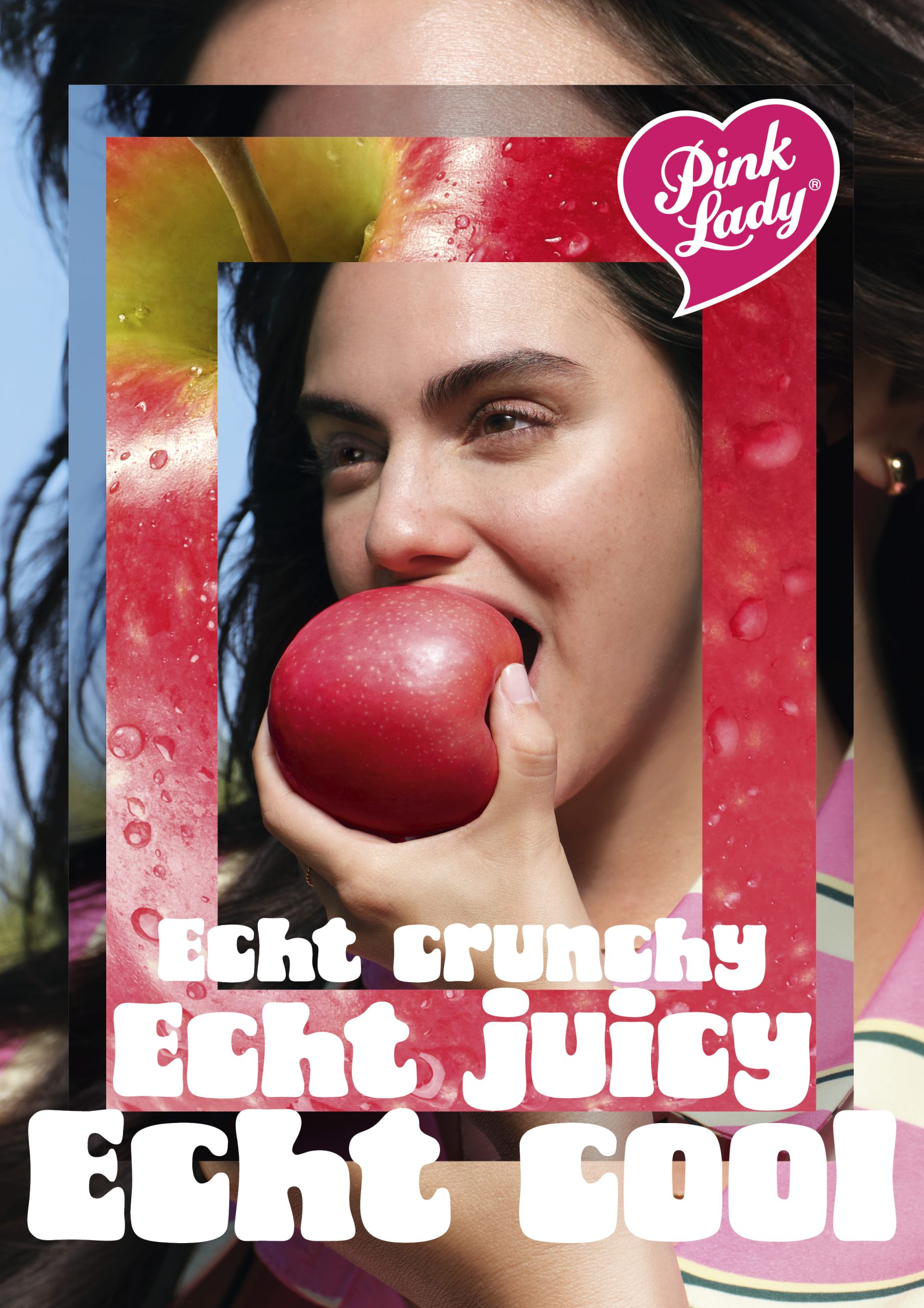 Pink Lady® slaat een nieuw hoofdstuk open en onthult haar nieuwe communicatieplatform: “Echt crunchy, echt juicy, echt cool”.